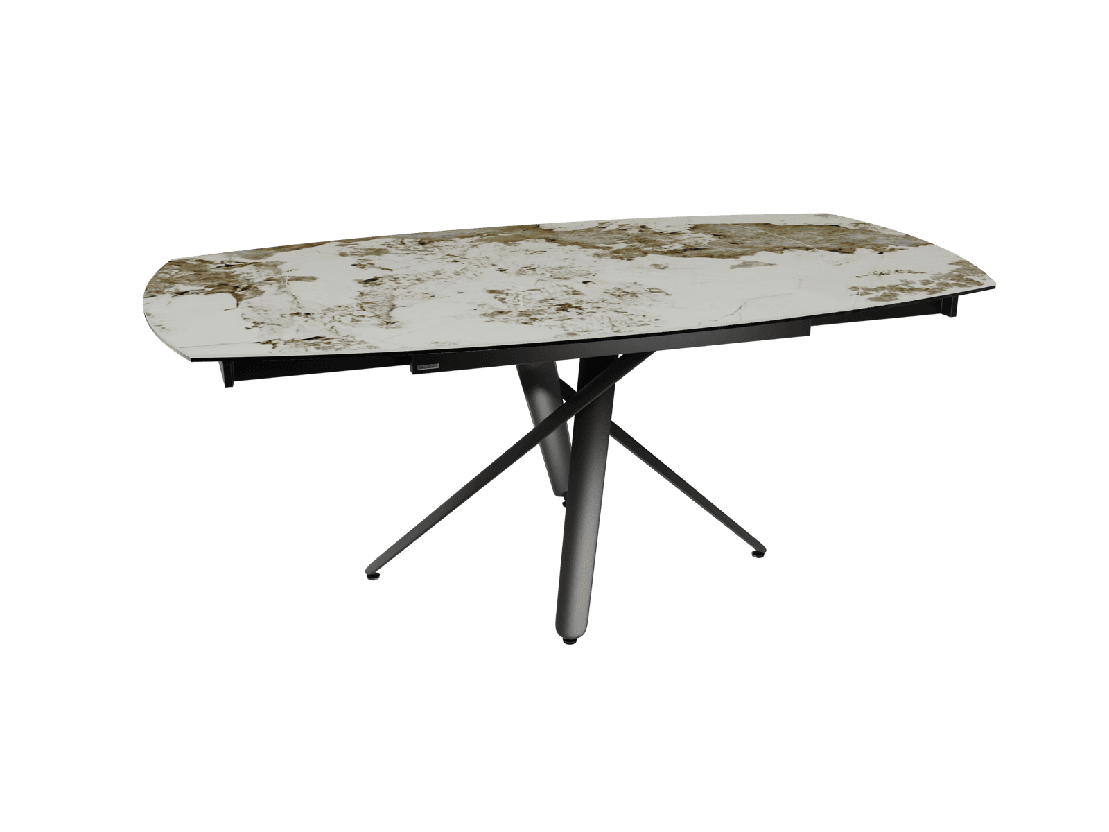 Optez pour l’élégance de la céramique Marbre Calcatta et ses veines aux tonalités chaleureuses avec la table Rivoli. Cette nouveauté signée Akante est équipée d’un mécanisme synchronisé avec deux rallonges de 30 cm chacune. En un clin d’œil, passez d’une surface de 130 x 100 cm à 190 x 100 cm. Accueillez aisément jusqu’à 8 convives pour un délicieux repas. Le plateau est en céramique Marbre Calcatta de 6 mm collée sur un verre de 6 mm. Son élégant piétement entrecroisé en acier laqué noir mat apporte une touche contemporaine et s’accorde parfaitement aux nuances brunes du plateau.