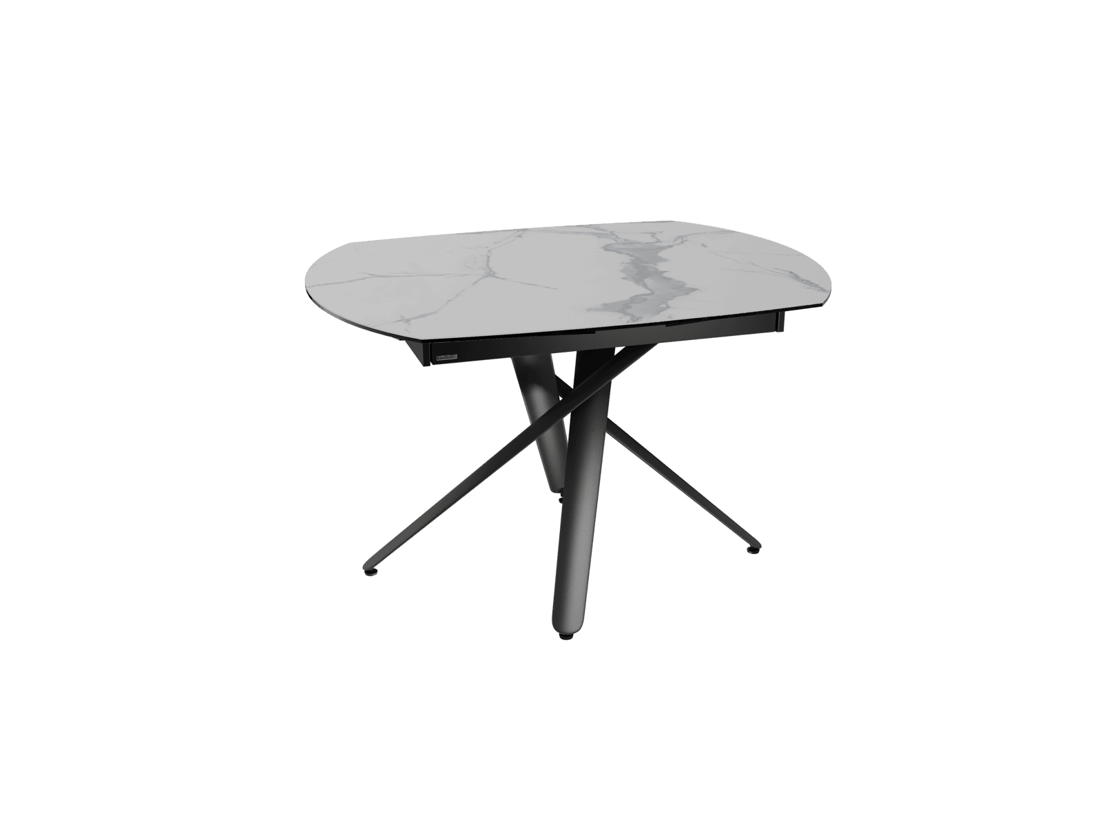 La nouvelle table de repas Rivoli est désormais disponible en céramique Marbre Mat. Originale et fonctionnelle, elle est dotée d’un mécanisme fluide et intuitif : il vous suffit de glisser le plateau manuellement pour faire apparaître deux rallonges de 30 cm. Obtenez ainsi une surface de plateau de 180 x 90 cm, idéal pour accueillir confortablement 6 à 8 convives. Le plateau est conçu en céramique Marbre Mat de 3 mm, collée sur un verre de 8 mm. Son piétement croisé en acier laqué noir mat apporte une touche contemporaine et graphique à l’ensemble.