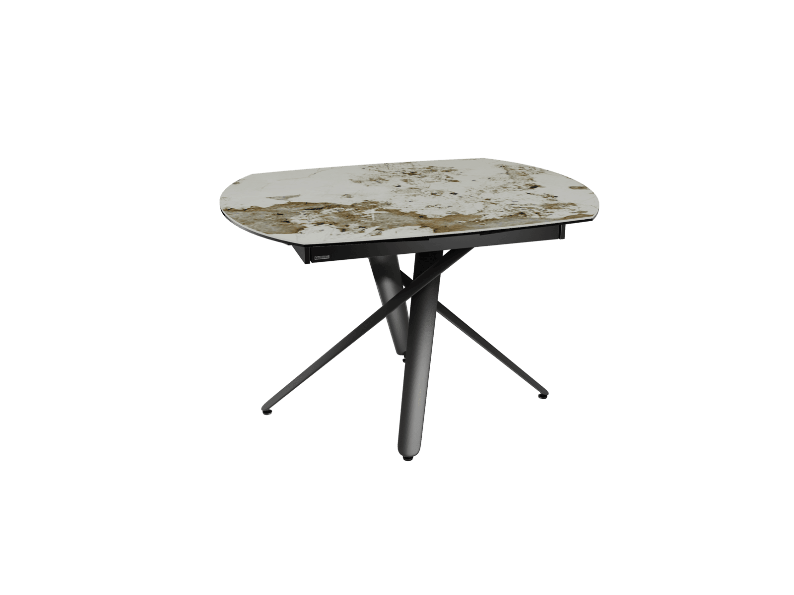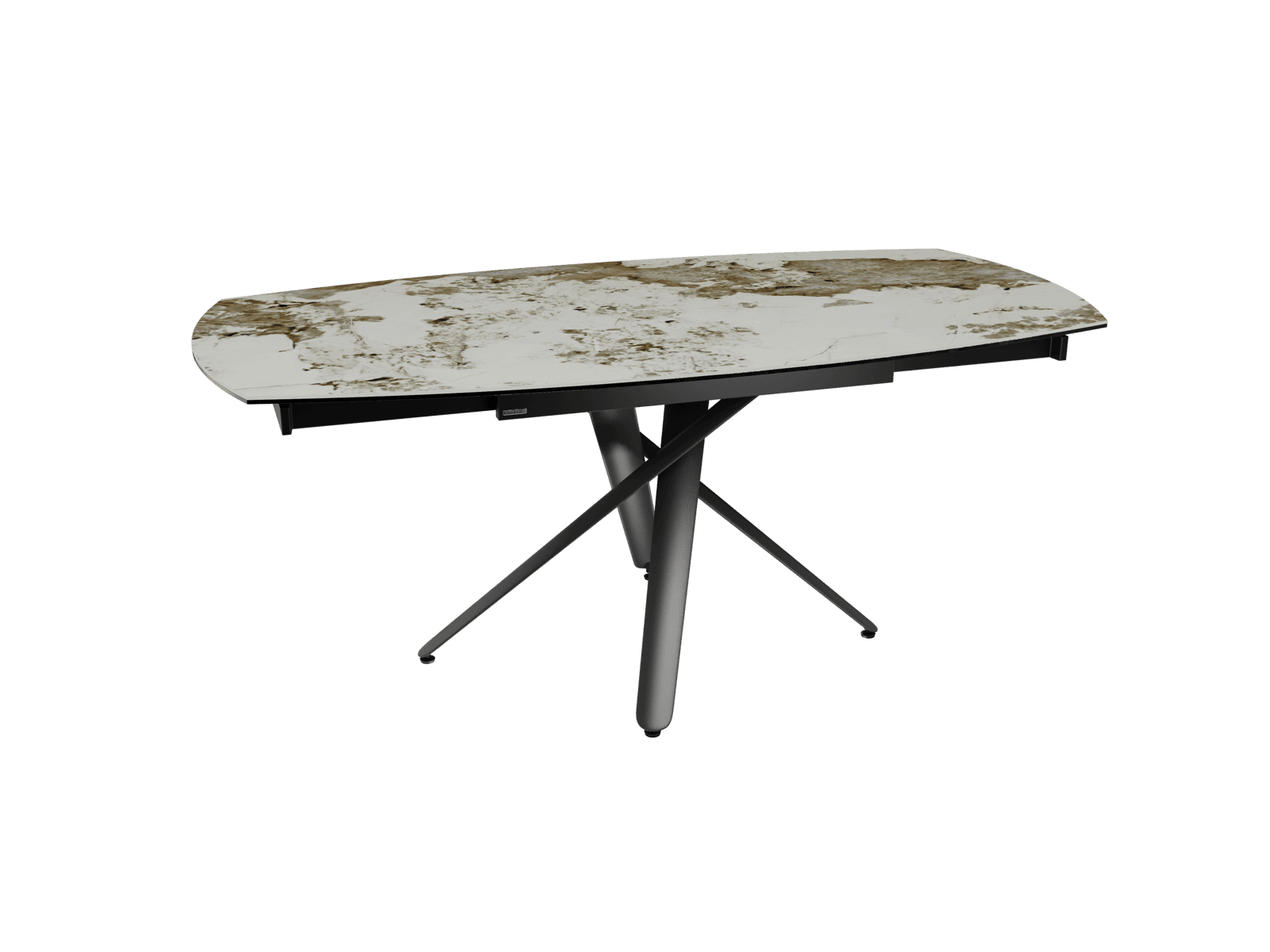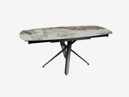 Découvrez la nouvelle collection Rivoli. Le plateau de cette table de repas reprend le mécanisme simple et intuitif de notre modèle best-seller Kheops : il vous suffit de le glisser pour faire apparaître deux rallonges de 30 cm. Le modèle mesure 120 x 90 cm en position fermée et atteint 180 x 90 cm une fois les rallonges déployées, il permet d’accueillir confortablement 6 à 8 convives. Le plateau est conçu en céramique Marbre Calcatta de 6 mm, collée sur un verre de 6 mm. Son élégant piétement croisé est conçu en acier laqué noir mat, son design original est résolument contemporain.