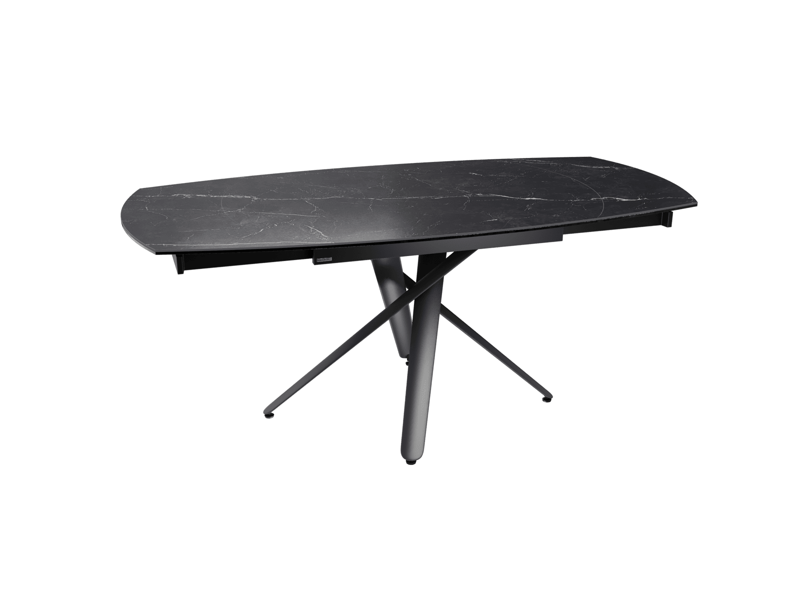 Pour vos dîners en famille ou entre amis, découvrez la table de repas Rivoli. D’un design sobre, inspiré du mobilier contemporain, ce modèle en céramique Marbre Marquina apportera une touche élégante à votre intérieur. Dotée d’un mécanisme synchronisé, elle permet par une simple rotation du plateau principal, de révéler deux rallonges latérales de 30 cm dissimulées sous celui-ci. Vous obtenez ainsi une surface de 180 x 90 cm, parfaite pour recevoir du monde, vous passerez de 6 à 8 hôtes. Le plateau est conçu en céramique Marbre Marquina de 6 mm, collée sur un verre de 6 mm. Son piétement croisé en acier laqué noir mat garantit une excellente stabilité et une robustesse à toute épreuve.