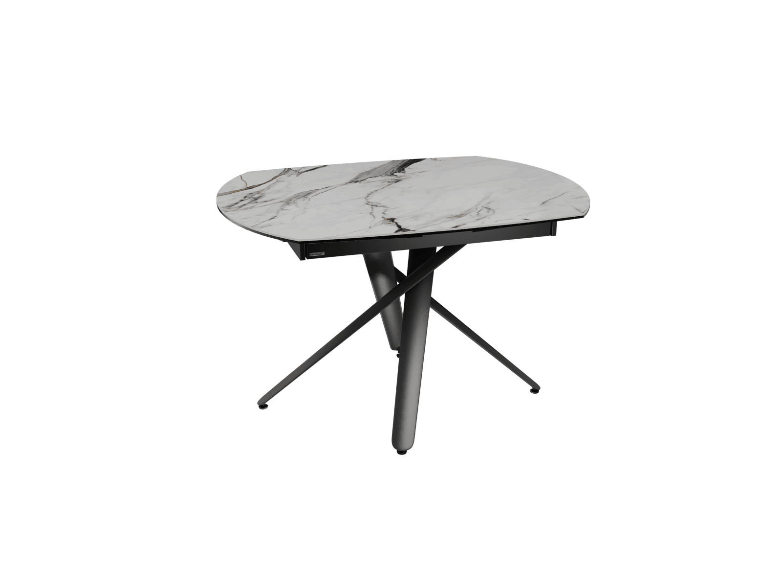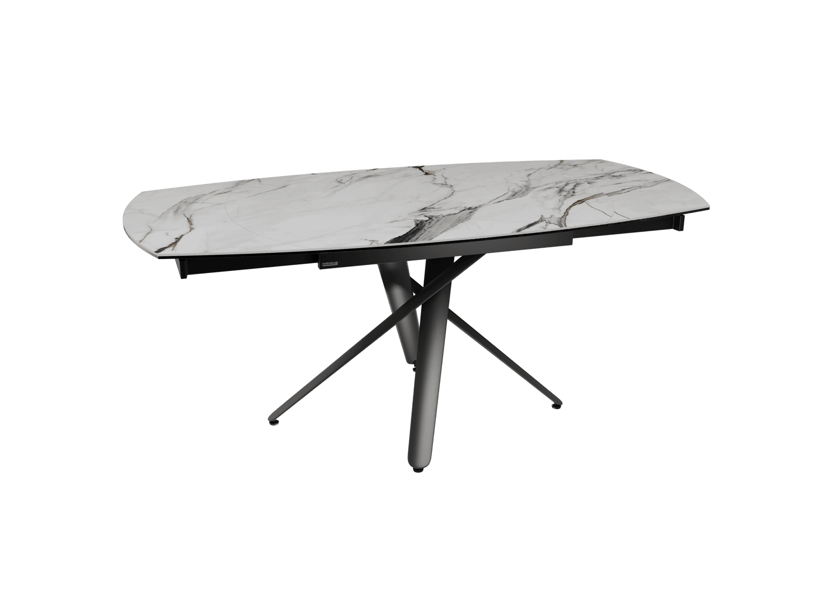 Vos prochains repas en famille ou entre amis seront conviviaux avec RIVOLI. Cette table en céramique Marbre Fiorentino d'une surface de 180 x 90 cm peut accueillir jusqu'à 8 convives. Dotée d’un mécanisme synchronisé, elle permet par une simple rotation du plateau principal, de révéler deux rallonges latérales de 30 cm dissimulées sous celui-ci. Ses veines élégantes la rendent unique et sophistiquée. Elle s'adapte aussi bien à une salle à manger chaleureuse et épurée qu'à une cuisine tendance et fonctionnelle. Son élégant piétement croisé assure stabilité et robustesse, il est en acier laqué noir mat.