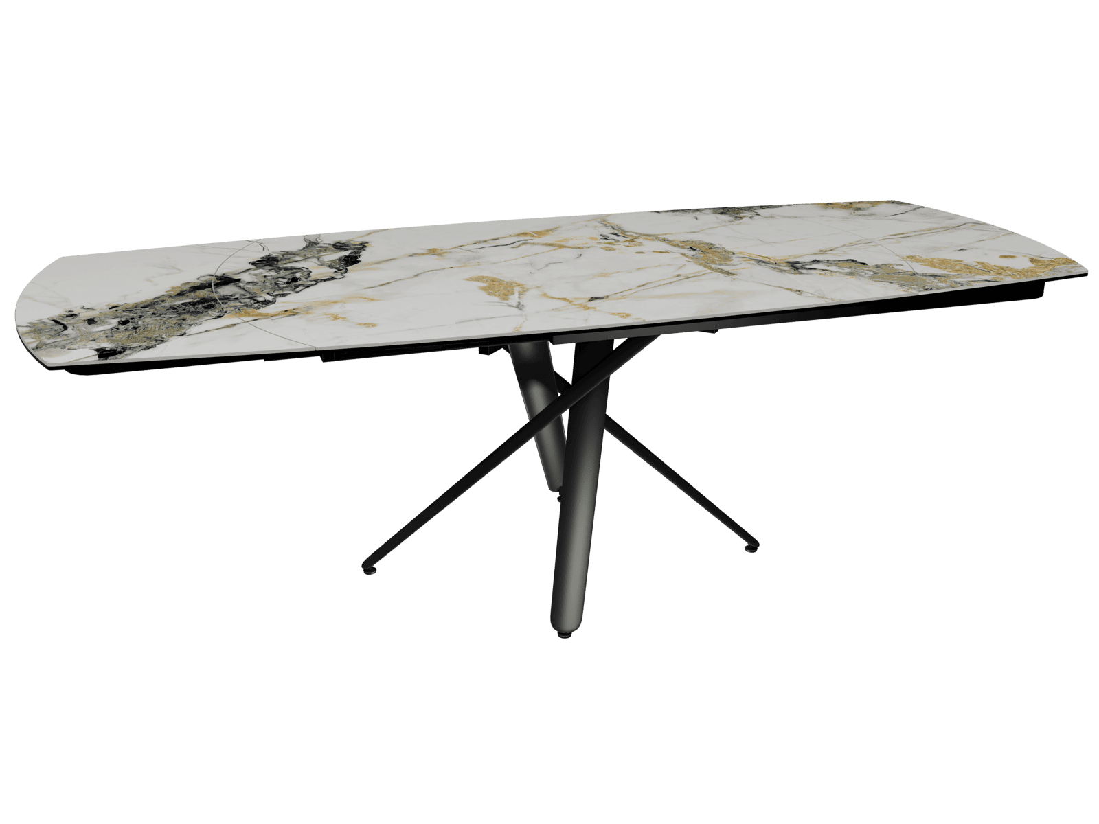 La table de repas Grande Rivoli en céramique Marbre Doro allie fonctionnalité intelligente et design contemporain. Grâce à son mécanisme synchronisé, elle passe en toute simplicité d’une dimension de 240 x 100 cm avec deux rallonges de 40 cm. Ce modèle peut accueillir jusqu’à 10 convives. Son design contemporain et ses lignes épurées lui confèrent une allure élégante, idéale pour un intérieur moderne. Le plateau est composé d’une céramique Marbre Doro de 6 mm, collée sur un verre de 8 mm pour plus de résistance. Son piétement entrecroisé en acier laqué noir mat apporte stabilité et caractère. Pratique et polyvalente, cette table extensible est l’alliée parfaite pour les repas en famille comme pour les soirées conviviales.