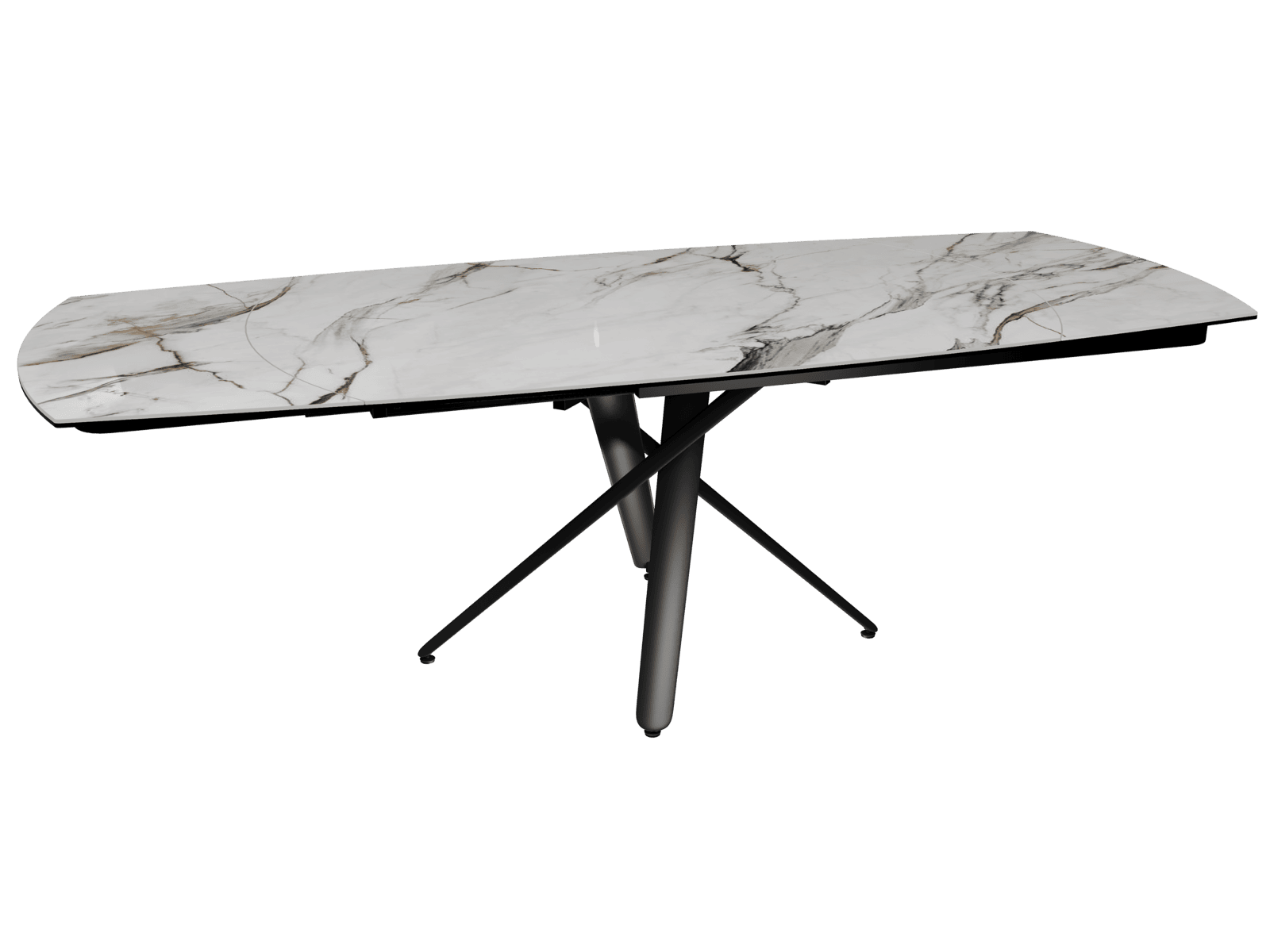Saveurs d’une cuisine familiale autour de grandes tablées. Les repas en famille ou entre amis seront placés sous le signe de la convivialité avec la Grande Rivoli. Cette table en céramique Marbre Fiorentino, de 160 x 100 cm, peut accueillir jusqu’à 8 convives. Grâce à ses deux rallonges latérales de 40 cm, elle offre une surface de 240 x 100 cm, permettant d’ajouter deux couverts supplémentaires. Ses lignes élégantes lui confèrent une allure sobre et sophistiquée. Elle s’intègre aussi bien dans une salle à manger chaleureuse et épurée que dans une cuisine tendance et fonctionnelle. Son plateau est réalisé en céramique Marbre Fiorentino de 6 mm, collée sur un verre de 8 mm, tandis que son piétement entrecroisé en acier laqué noir mat assure stabilité et caractère.