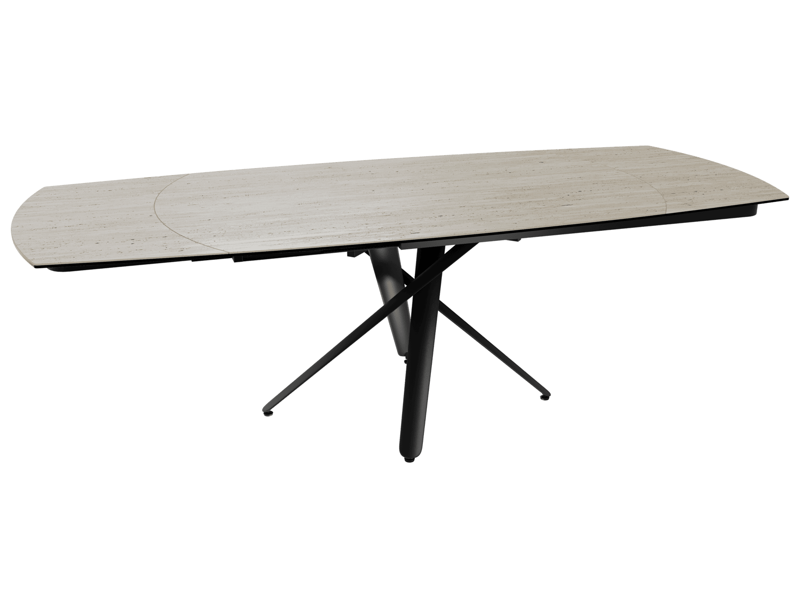 Optez pour la tendance du Travertin pour sublimer votre intérieur. La table de repas Grande Rivoli est idéale pour les familles nombreuses ou les amateurs de grandes tablées. Cette table de 160 x 100 cm, peut accueillir jusqu’à 8 convives. Grâce à ses deux rallonges latérales de 40 cm, elle offre une surface de 240 x 100 cm, permettant d’ajouter deux couverts supplémentaires. Son plateau est conçu en céramique Travertin de 3 mm, collée sur un verre de 8 mm. Cette finition élégante, à l’aspect velouté, apporte chaleur et caractère à votre pièce. Son piétement, composé de quatre pieds entrecroisés en acier laqué noir mat, garantit stabilité et robustesse.