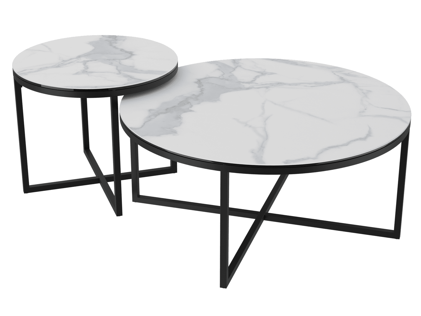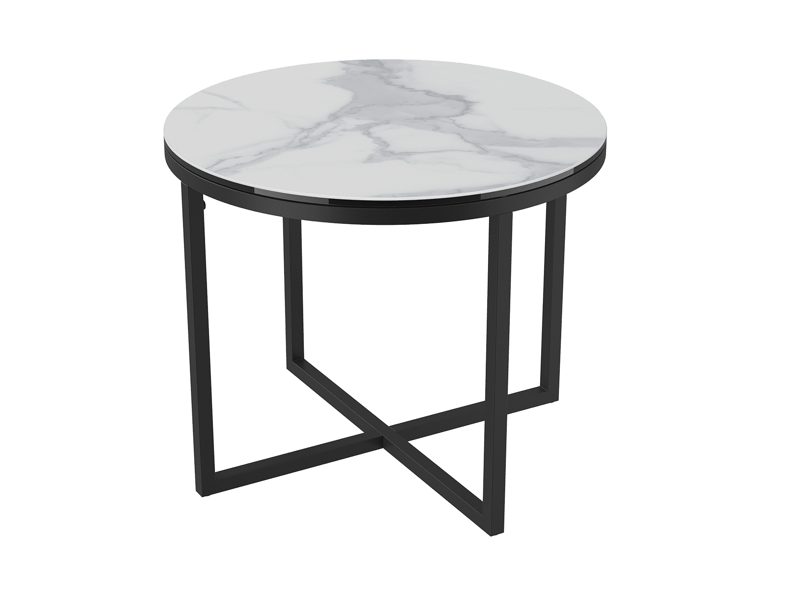 Tendance, chic et intemporelle, le bout de canapés Talia en céramique marbre mat embellira votre décoration. Son plateau de 55 cm de diamètre est en céramique marbre mat de 3 mm d’épaisseur collée sur un verre de 6 mm ce qui lui assure une facilité d’entretien et une durabilité. Son piétement croisé en acier laqué noir mat de 45 cm de hauteur vous permet de l’accompagner de la table basse de la même gamme et de personnaliser votre séjour.