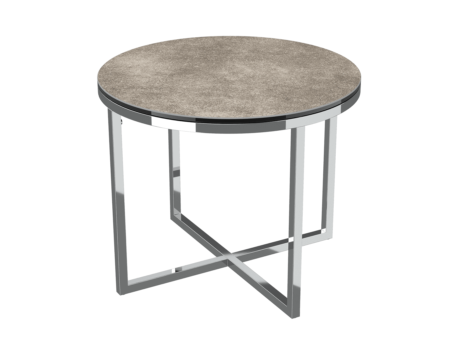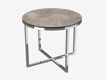 Talia est une table d'appoint proposée par Akante. Elle est composée d'un plateau en céramique argile qui repose sur une structure arrondie en acier inoxydable poli qui lui donne un effet mirroir. Le diamètre de sa structure est de 56 cm pour une hauteur de 45 cm.