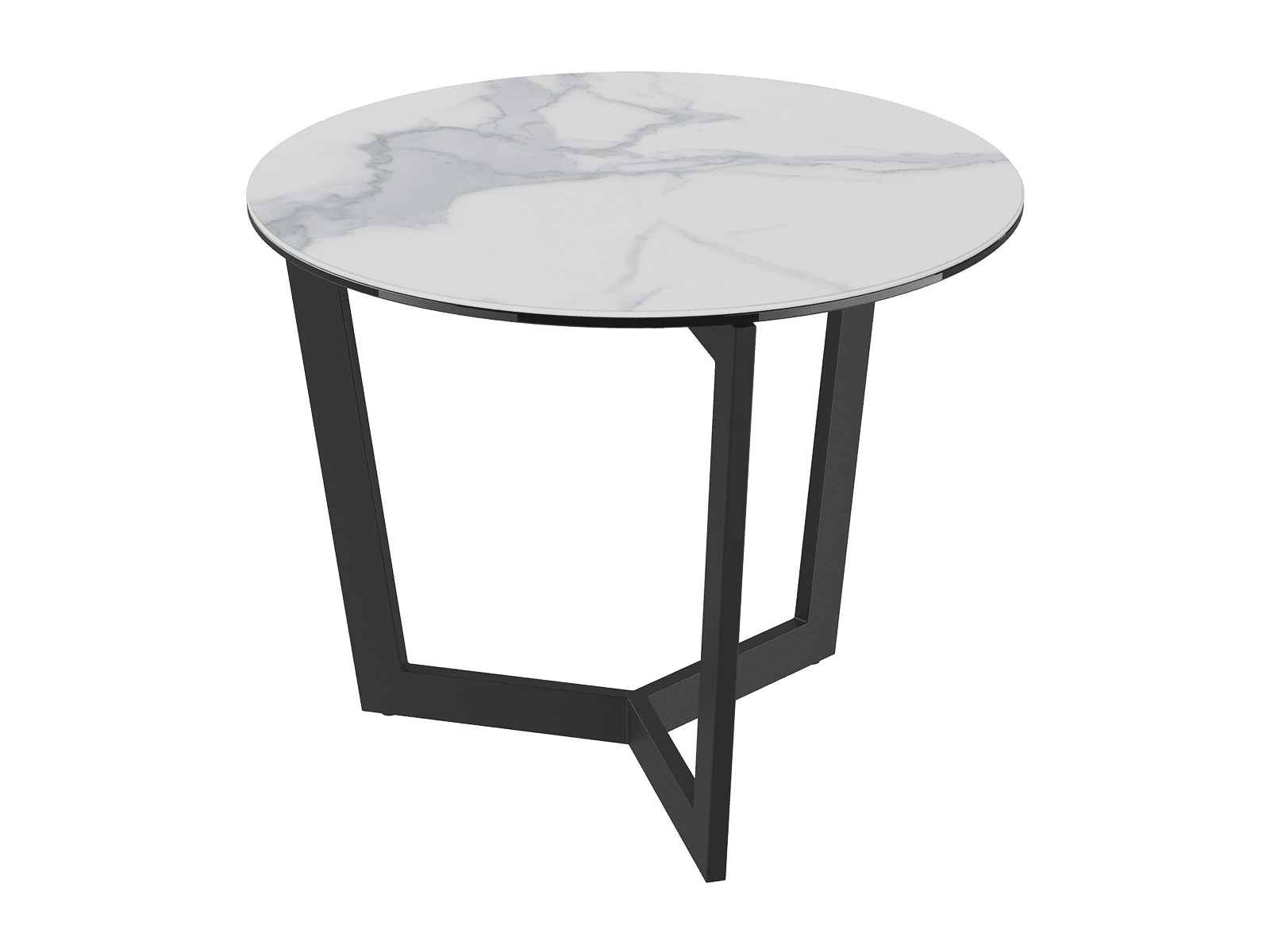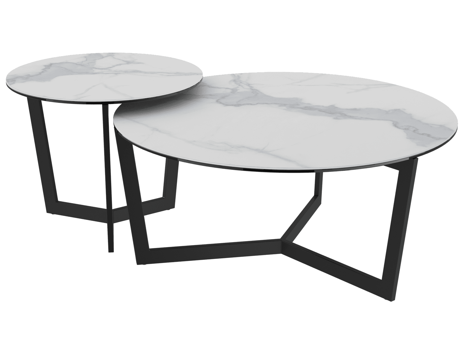 Découvrez le petit coin canapé Tamara en céramique marbre avec une structure en acier laqué noir mat pour un style soigné et élégant. Il illuminera votre salon par le détail marbre de son plateau. Celui-ci mesure 3mm d'épaisseur et est collé sur un vitrage de 6mm.