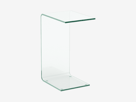 Eva est un bout de canapé en verre courbé à chaud. Le modèle présenté est en verre clair. Son design moderne et élégant, ainsi que sa transparence, lui permettent de s'adapter facilement à tous les styles d'intérieur. Ce bout de canapé mesure 66 cm de hauteur, 45 cm de longueur et 31,5 cm de largeur.