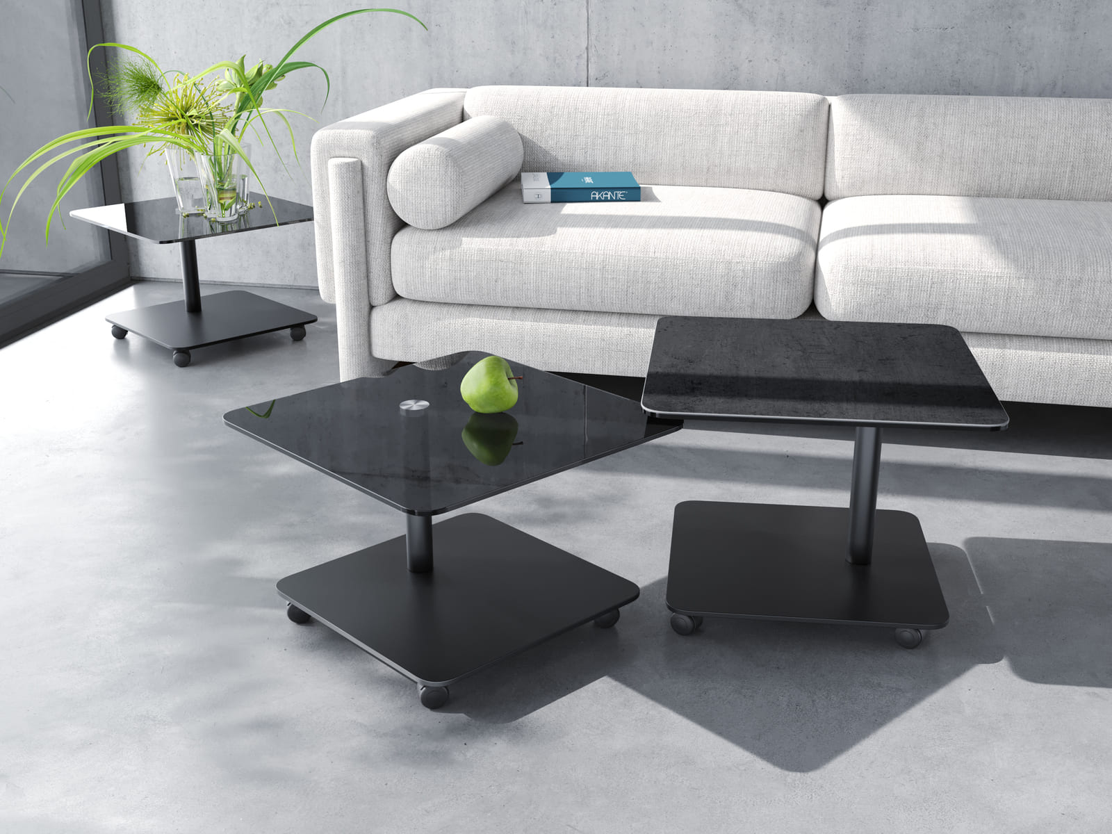 Découvrez le nouveau bout de canapé Thales. Ses lignes fines et son design apporteront de la modernité à votre salon. Son plateau en verre gris fumé est assorti avec le piétement en acier laqué noir mat. Thalès est pratique avec ses 4 roulettes qui vous permet de le déplacer facilement. Combinez le avec un autre bout de canapé Thalès de 46 cm de hauteur pour un duo contemporain. Nous vous recommandons de le nettoyer avec un chiffon humide et d'éviter l'utilisation de produits chimiques.