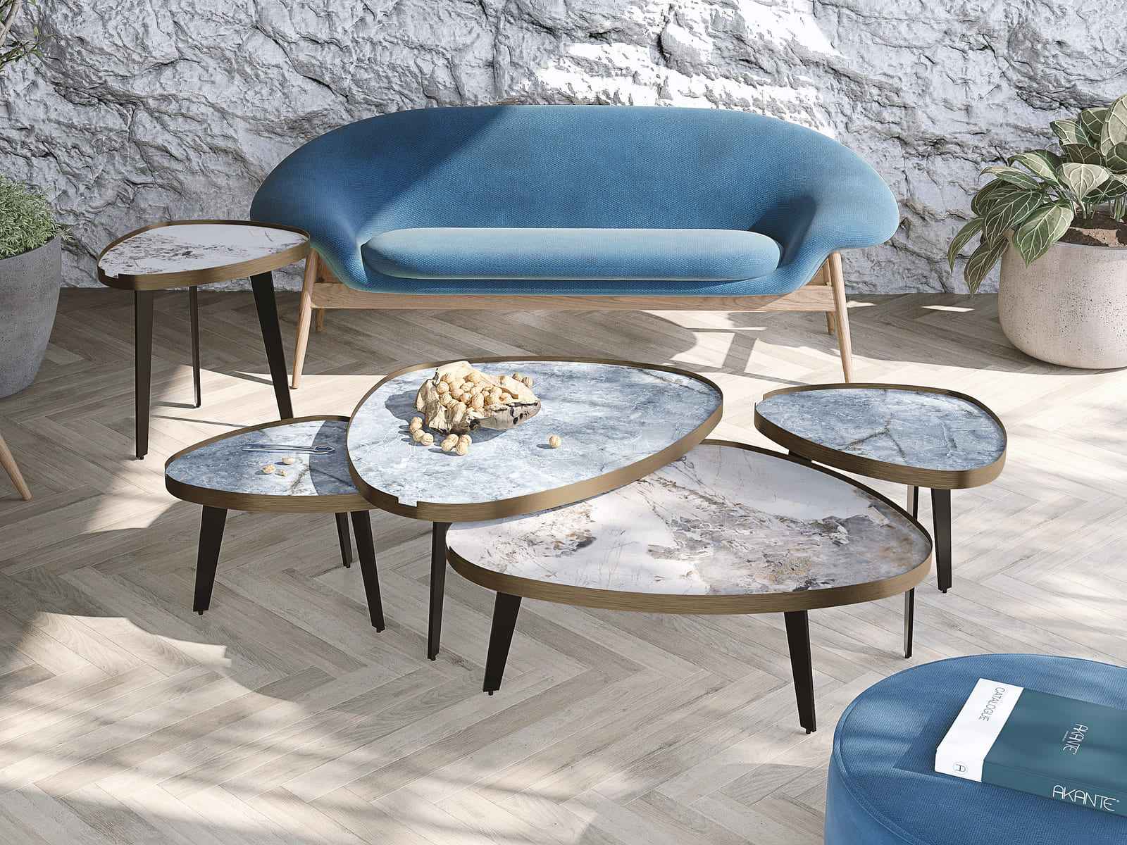 La gamme Capri est une fusion d'élégance et d'originalité. Le coin canapé Capri est composé d'un plateau en céramique marbre Onyx bleu ainsi que d'une ceinture en acier effet laiton. Cette association fait de cet objet un élément majeur pour votre décoration. Cette petite table peut être associée aux tables basses Capri afin d'obtenir un ensemble harmonieux et design.