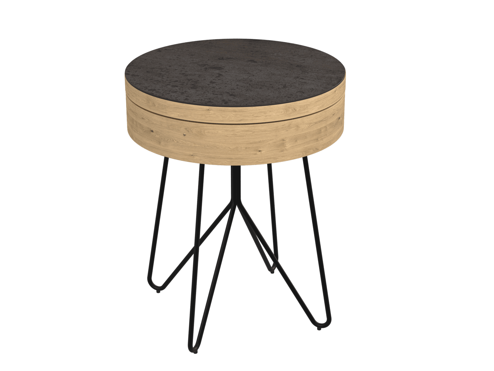 • Plateau supérieur : Céramique titane de 3 mm sur MDF plaqué chêne
