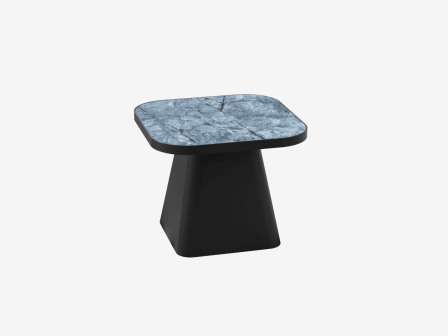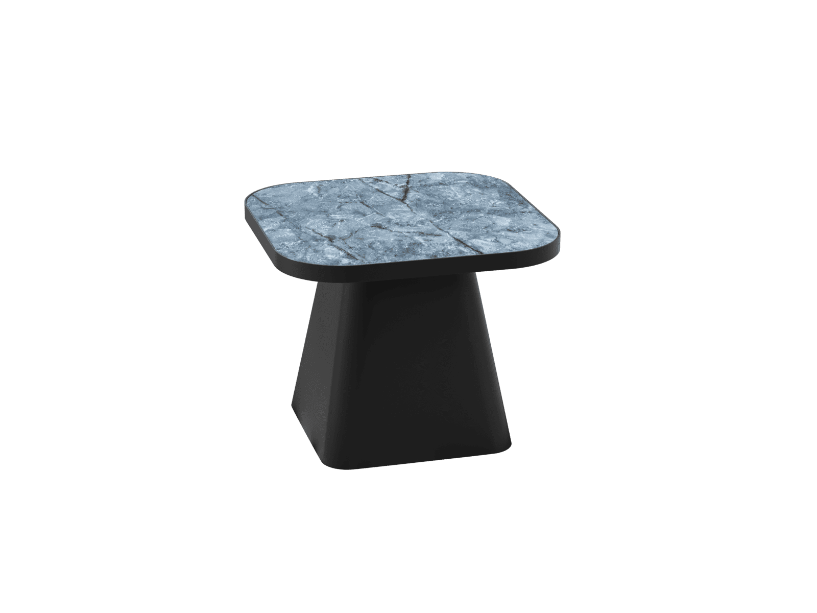 Vous souhaitez ajouter une touche de couleur à votre coin canapé au style moderne et contemporain ? Découvrez le bout de canapé Petra et son plateau en teinte Marbre Onyx Bleu. Cet élégant meuble d’appoint possède un plateau carré aux lignes arrondies. Il apporte de la douceur à son piétement en forme de trapèze, conçu en acier laqué noir mat. Concernant ses dimensions, ce modèle mesure 50 cm de chaque côté sur une hauteur de 40 cm.