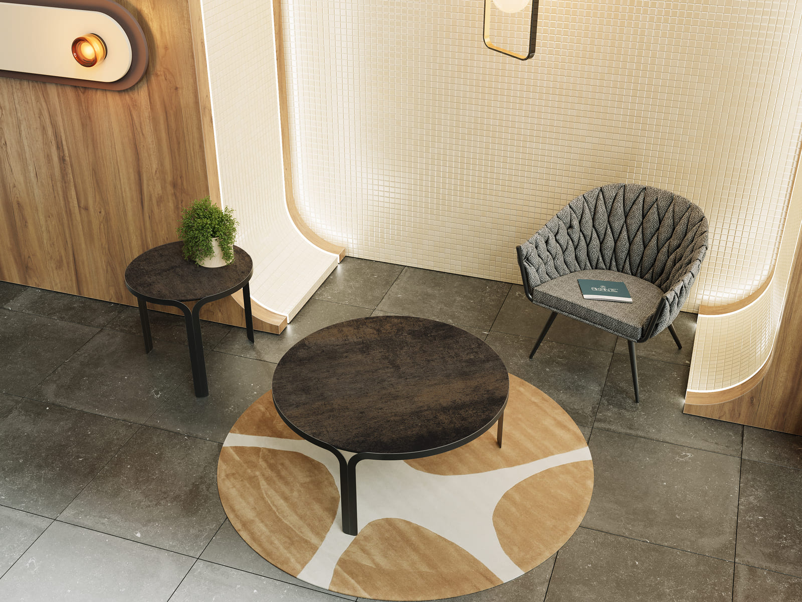 Optez pour le style contemporain de la collection Madura d’Akante. Le bout de canapé présenté possède une finition Acier. Son plateau est conçu en céramique de 3 mm collée sur un verre de 6 mm. Le piètement en acier laqué noir mat de Madura est chic et délicat. En ce qui concerne ses dimensions, ce bout de canapé mesure 55 cm de diamètre et 50 cm de hauteur.