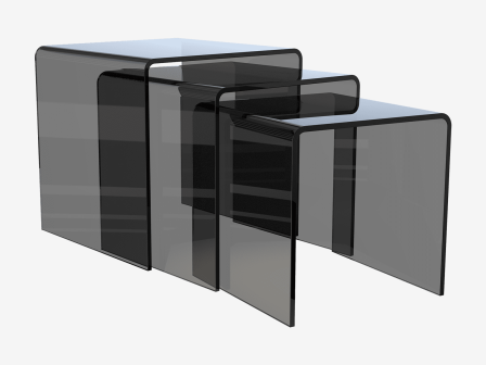 L’ensemble OLIVEA gris fumé se compose de trois consoles gigognes, pouvant être facilement empilées ou déplacées selon les besoins. Leur conception unique repose sur l’utilisation innovante d’un verre haut de gamme résistant, courbé à haute température.