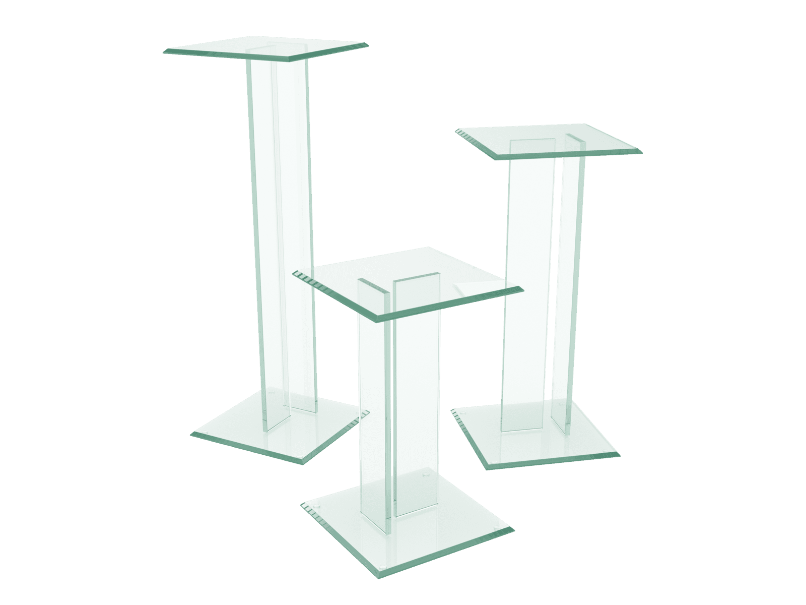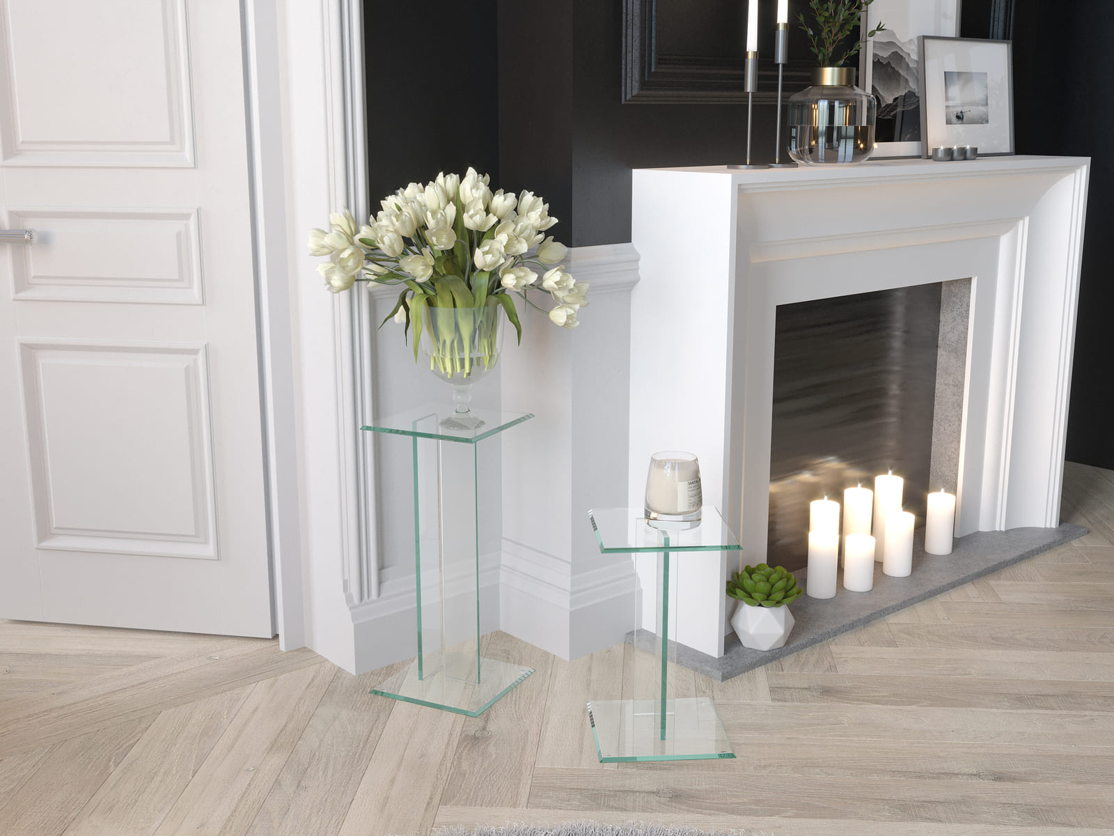 Trivia est un meuble classique et chic. Construit en verre collé de 10 mm, Trivia est à la fois un meuble décoratif et utile. Vous pouvez aussi y déposer une statue ou un élément Floral. Trivia est disponible en 3 hauteurs : 41cm, 56cm et 71cm. Présenté ici en hauteur 41 cm.