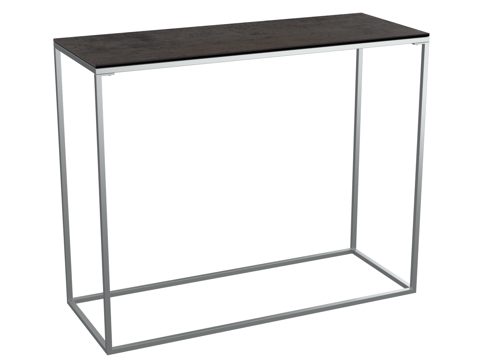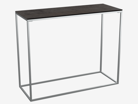 La console Julia de chez Akante dispose d'une structure en inox mat. Cette fintion contemporaine et intemporel se marie très bien avec son plateau en céramique grise qui lui donne un aspect bétonné très à la mode.