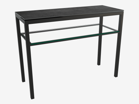 Découvrez la console Claudia signée Akante. Son plateau en céramique titane de 3 mm d’épaisseur collé sur un verre de 6 mm habille votre intérieur de tonalités sombres et élégantes. Son plateau inférieur en verre apporte de l’originalité à l’ensemble. Haute de 75 cm, cette console se fond dans chaque style d’intérieur. Son piètement en acier laqué noir mat lui assure solidité et résistance au temps.