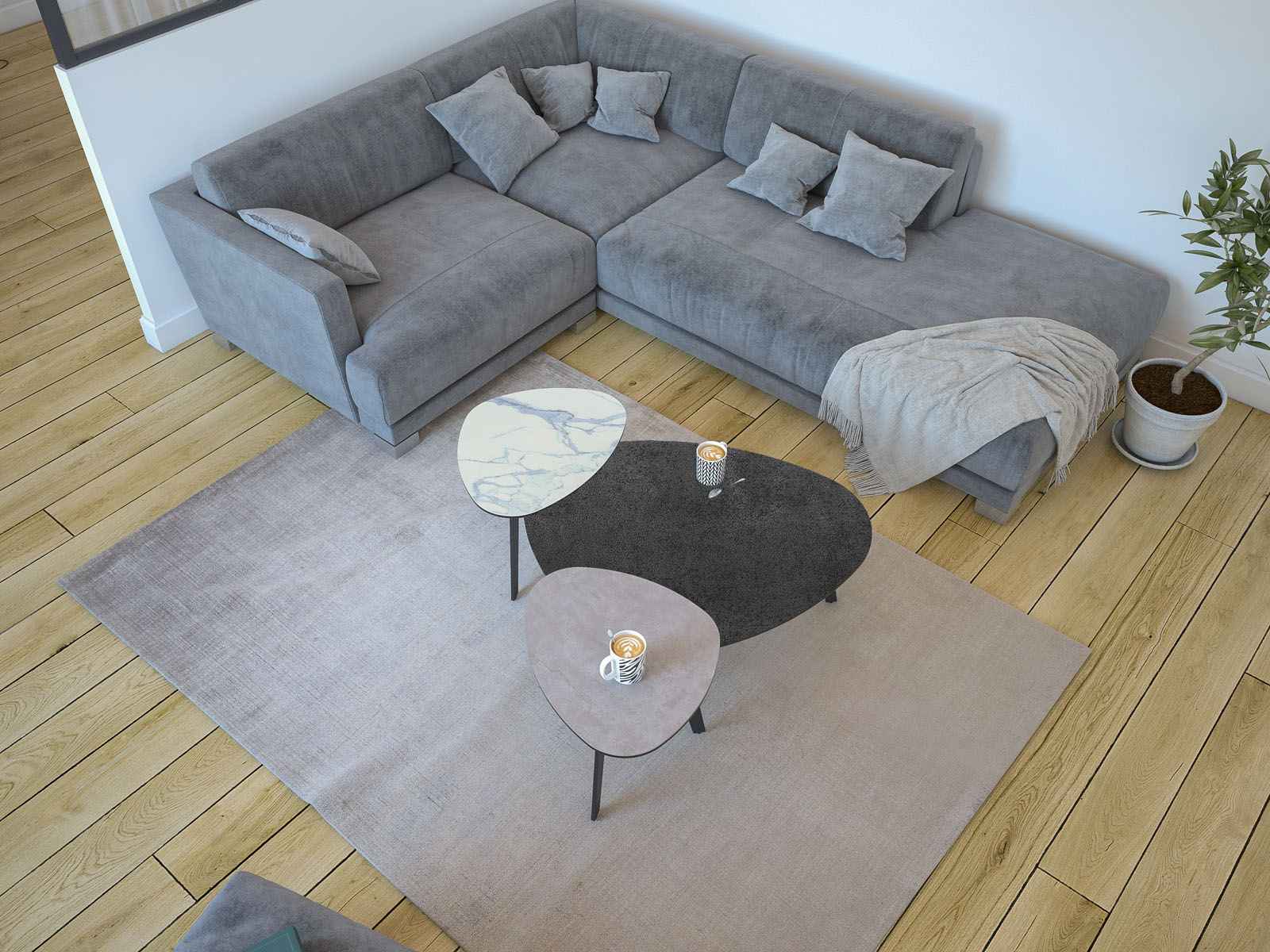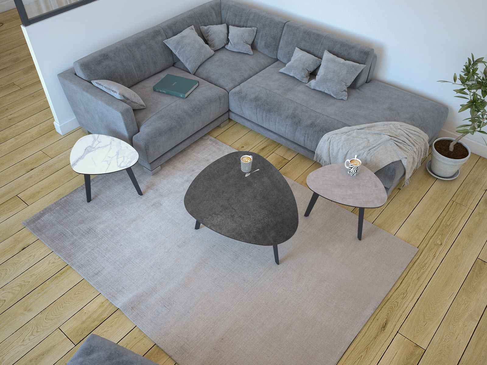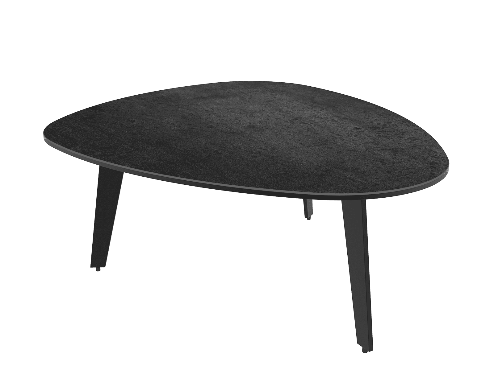 La table basse Galet est une table avec un plateau en céramique ayant la forme d’un galet. Ce plateau est constitué d’une céramique de 3mm collée sur un verre de 6mm. Les pieds de cette table basse sont en acier laqué forgé laqué noir. Cette table basse se décline en différente hauteur et finition de plateau. Elle est présentée ici avec une hauteur de 33cm et un plateau en céramique titane