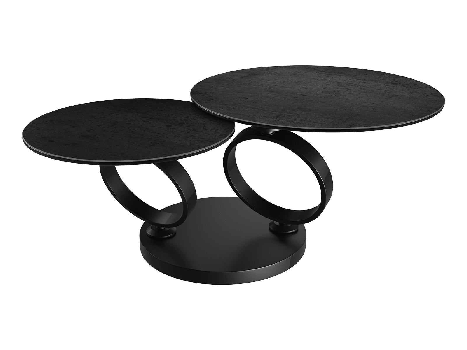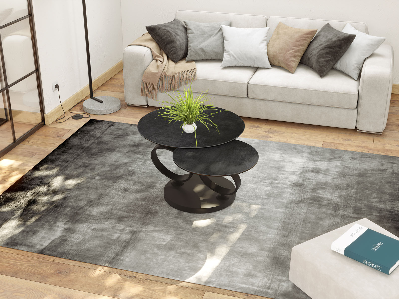 Découvrez le nouveau modèle de table basse Eolia Black et ses deux plateaux en céramique titane, une signature Akante. Les pieds noir en acier laqué noir mat appuient un look total black élégant et raffiné. Les plateaux en céramique font 3 mm d'épaisseur et sont collés sur un vitrage de 6 mm pour assurer à la table une bonne solidité.