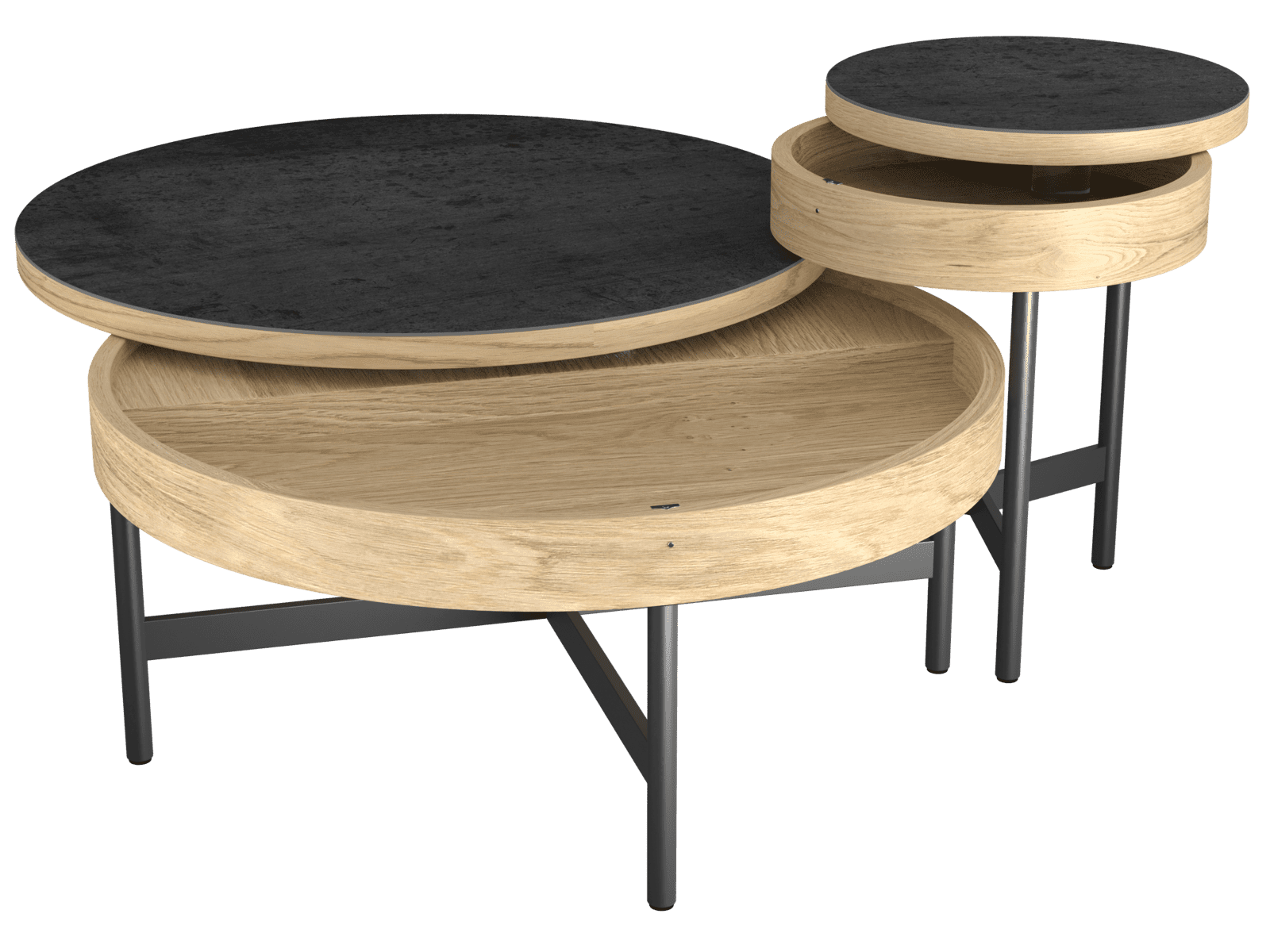 • Plateau supérieur : Céramique titane de 3 mm sur MDF plaqué chêne