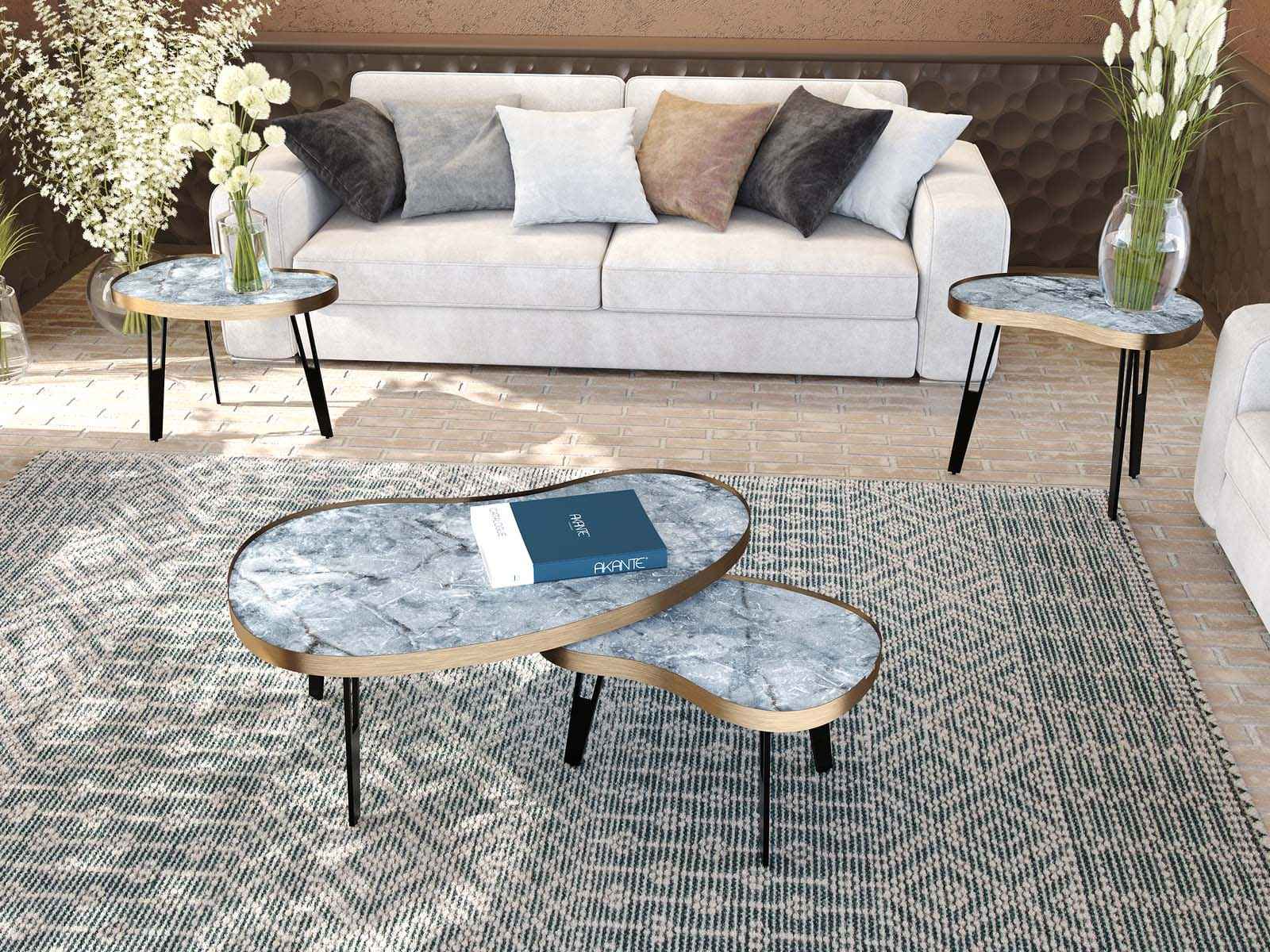 Découvrez la table basse Monza : une alliance d’originalité et d’élégance. La céramique Onyx bleu de son plateau vous séduira par ses notes esthétiques et tendances. La céramique est pleine masse et mesure 11 mm d’épaisseur. La ceinture dorée en acier effet bronze de 4 cm de hauteur, apporte à la table un design singulier et graphique. Associez Monza avec les bouts de canapés de la même gamme pour obtenir un ensemble de tables gigognes pratique et harmonieux.