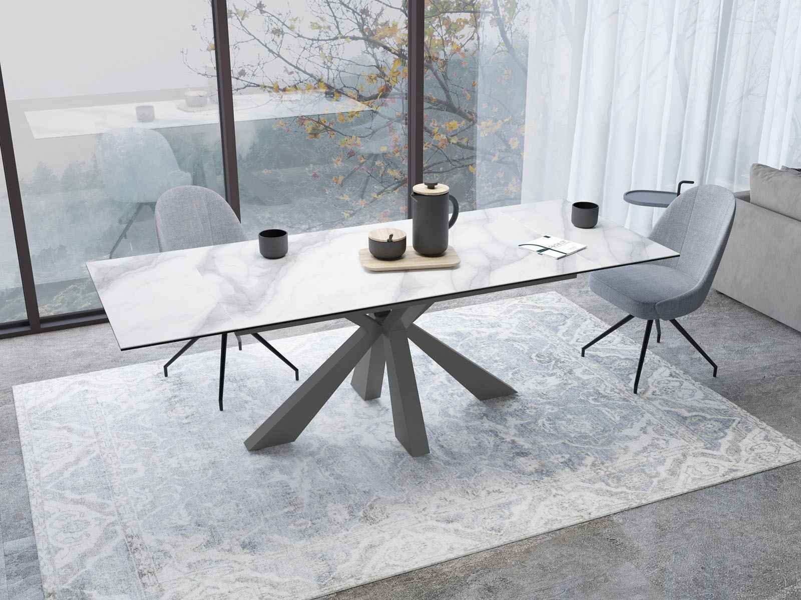 Grâce à sa beauté épurée et naturelle, la table de repas Ottawa en céramique marbre blanc sera parfaite pour illuminer vos grands espaces. Aussi chic que pratique, son plateau de 150 cm de long et de 100 cm de large s’étend jusqu’à 230 cm grâce à ses deux rallonges de 40 cm dépliables indépendamment. Son piétement gris taupe raffinera votre décoration. Afin de lui assurer une solidité et une résistance au quotidien, son plateau en céramique de 3 mm est collé à un verre de 8 mm.