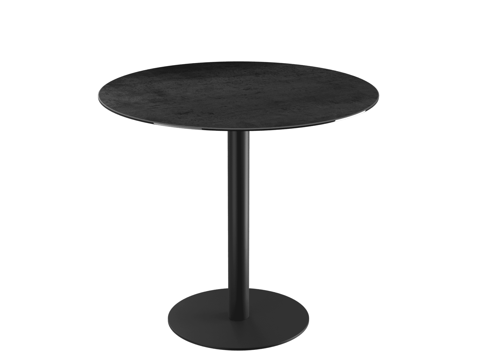 Orlando est une table snack d'un diamètre de 100cm. Sa hauteur est de 90cm. Son plateau est en céramique acier de 3mm fabriquée en Espagne et collée sur un vitrage de 8 mm. Cela rend sa surface hyper résistante aux chocs et rayures.
