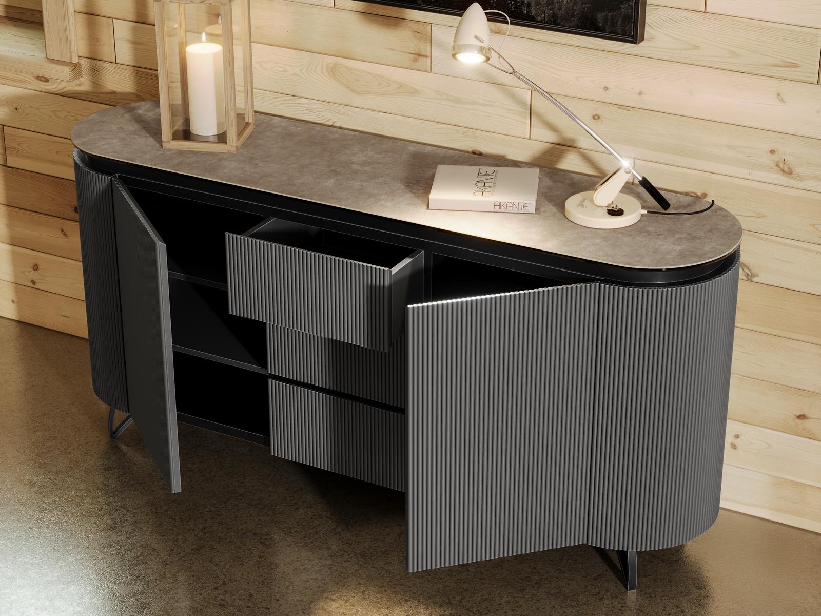 NOT AVAILABLE FOR THE UK MARKET. The COLUMBUS sideboard combines the warmth of wood with the elegance of ceramic for a refined and functional style. Its fluted MDF veneered doors add a contemporary graphic touch. With spacious storage including shelves and drawers, it is both practical and stylish. The ceramic top, available in ten finishes, blends seamlessly into any interior. Offered in two sizes (130 or 170 cm), the COLUMBUS sideboard perfectly balances modernity and authenticity.