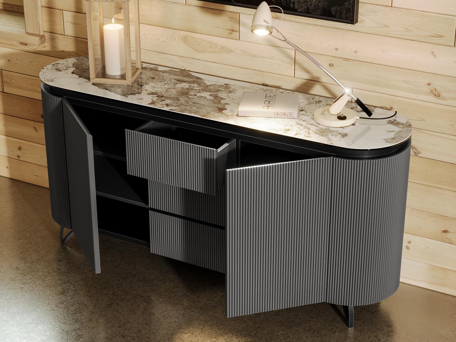 NOT AVAILABLE FOR THE UK AND IRISH MARKET. The COLUMBUS sideboard combines the warmth of wood with the elegance of ceramic for a refined and functional style. Its fluted MDF veneered doors add a contemporary graphic touch. With spacious storage including shelves and drawers, it is both practical and stylish. The ceramic top, available in ten finishes, blends seamlessly into any interior. Offered in two sizes (130 or 170 cm), the COLUMBUS sideboard perfectly balances modernity and authenticity.