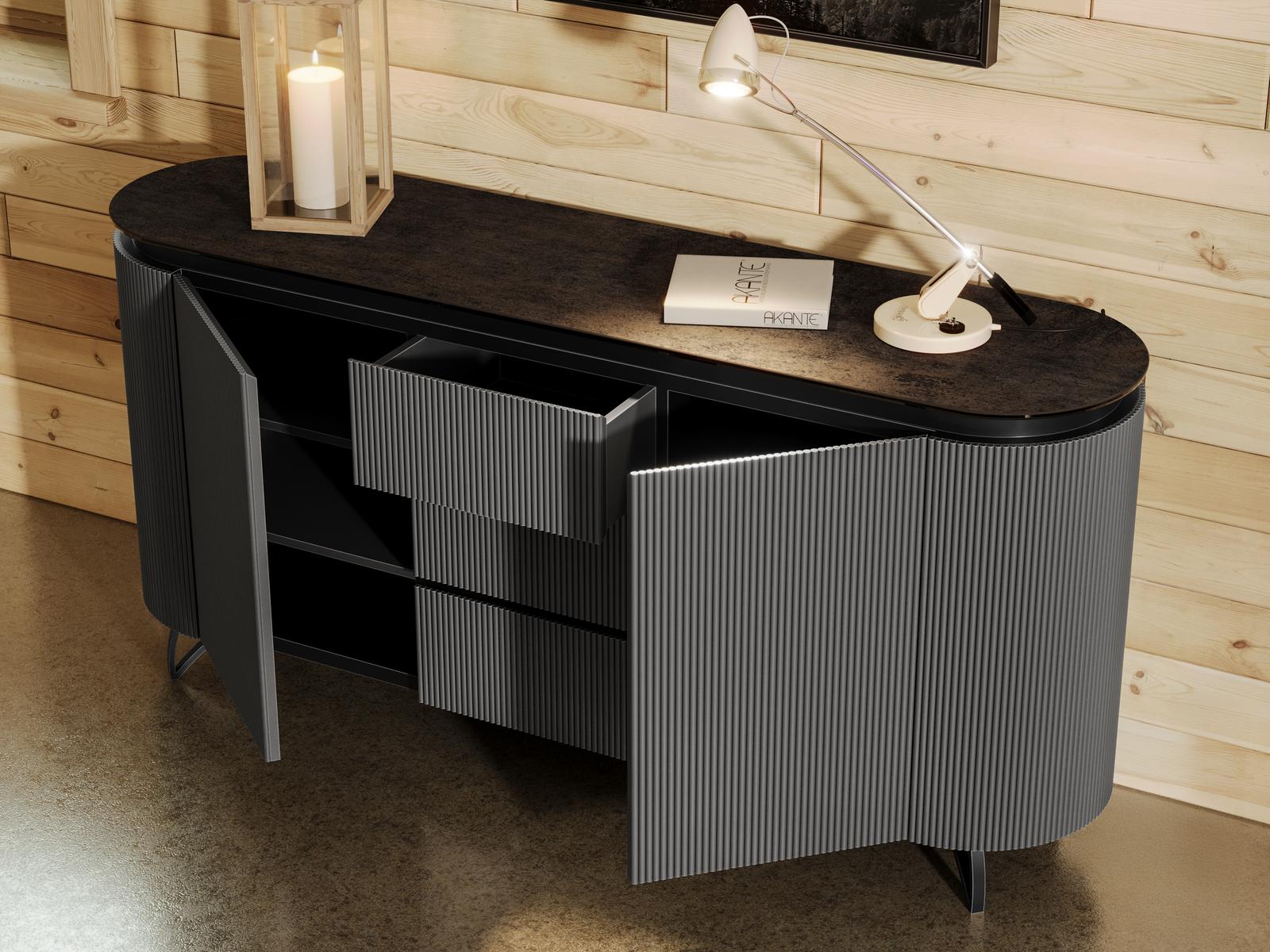 NOT AVAILABLE FOR THE UK MARKET. The COLUMBUS sideboard combines the warmth of wood with the elegance of ceramic for a refined and functional style. Its fluted MDF veneered doors add a contemporary graphic touch. With spacious storage including shelves and drawers, it is both practical and stylish. The ceramic top, available in ten finishes, blends seamlessly into any interior. Offered in two sizes (130 or 170 cm), the COLUMBUS sideboard perfectly balances modernity and authenticity.