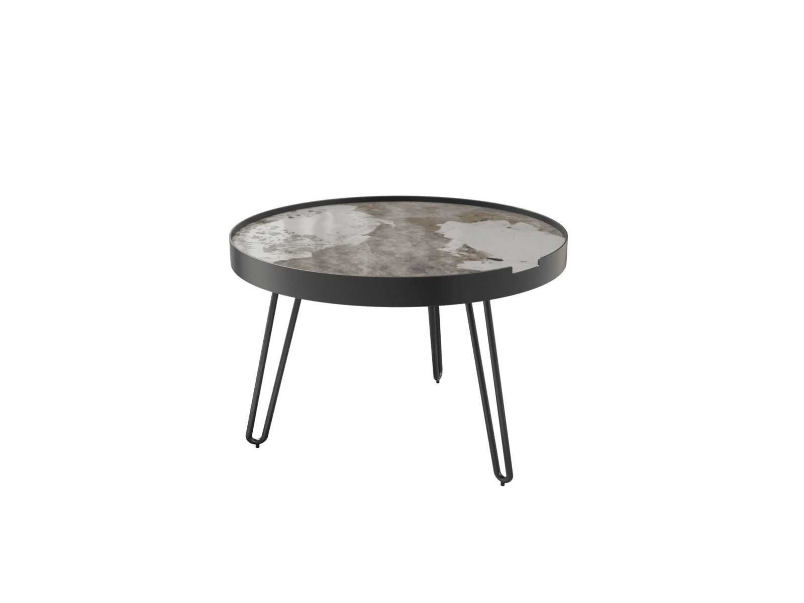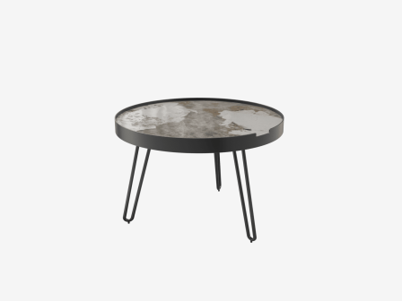 Afmetingen en details Nettogewicht : 9,7 Kg Staalband van 4cm mat zwart gelakt Kleur : Marmer calcatta Diameter : 50 cm Afmetingen : Ø 50 x 33 cm Hoogte : 33 cm Onderstel : zwarte epoxylak Plateau : 11 mm volkern keramiek