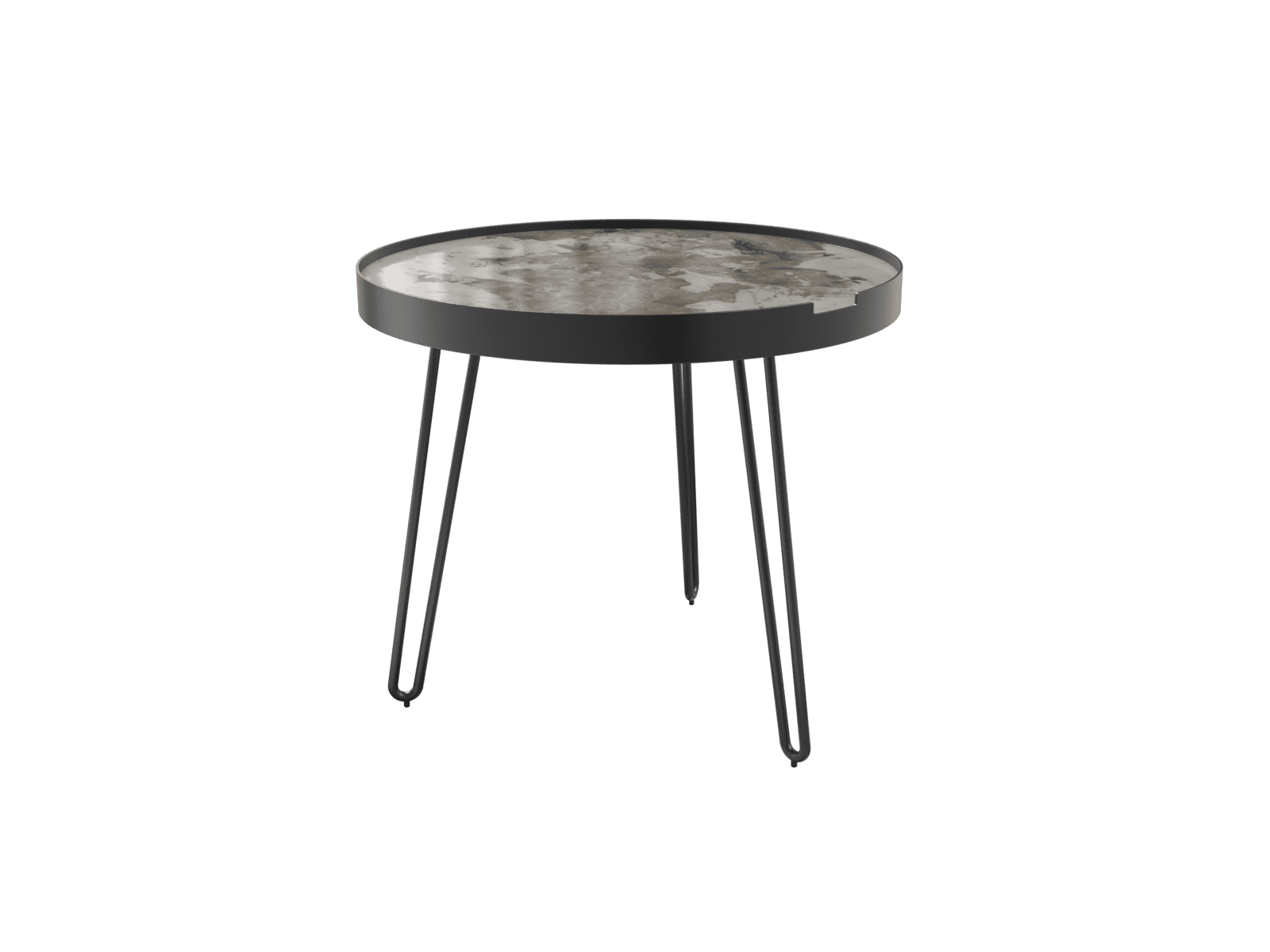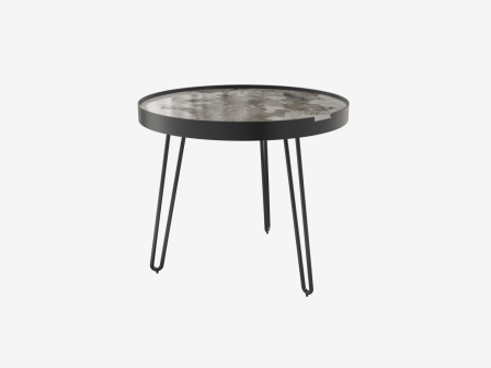 Afmetingen en details Nettogewicht : 9,7 Kg Staalband van 4cm mat zwart gelakt Kleur : Marmer calcatta Diameter : 50 cm Afmetingen : Ø 50 x 43 cm Hoogte : 43 cm Onderstel : zwarte epoxylak Plateau : 11 mm volkern keramiek