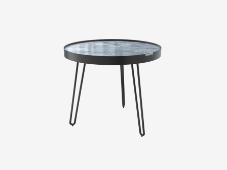 Afmetingen en details Nettogewicht : 9,7 Kg Staalband van 4cm mat zwart gelakt Kleur : Marmer onyx blauw Diameter : 50 cm Afmetingen : Ø 50 x 43 cm Hoogte : 43 cm Onderstel : zwarte epoxylak Plateau : 11 mm volkern keramiek